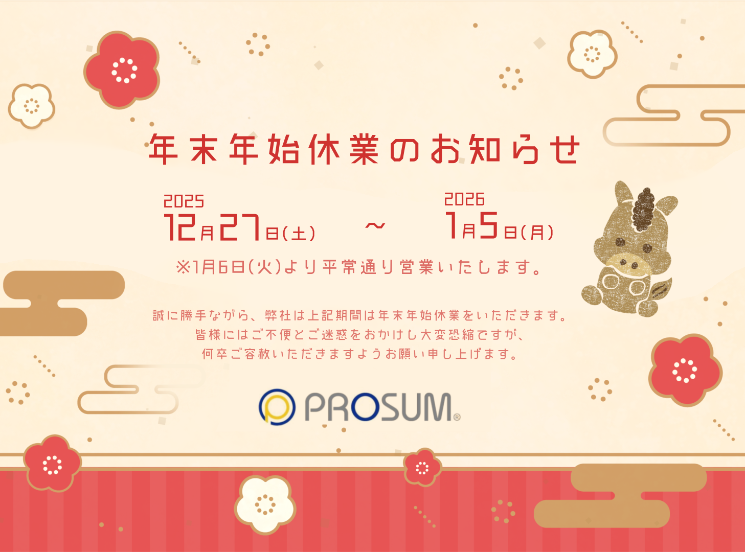 誠に勝手ながら、弊社は下記のとおり年末年始休業をいただきます。